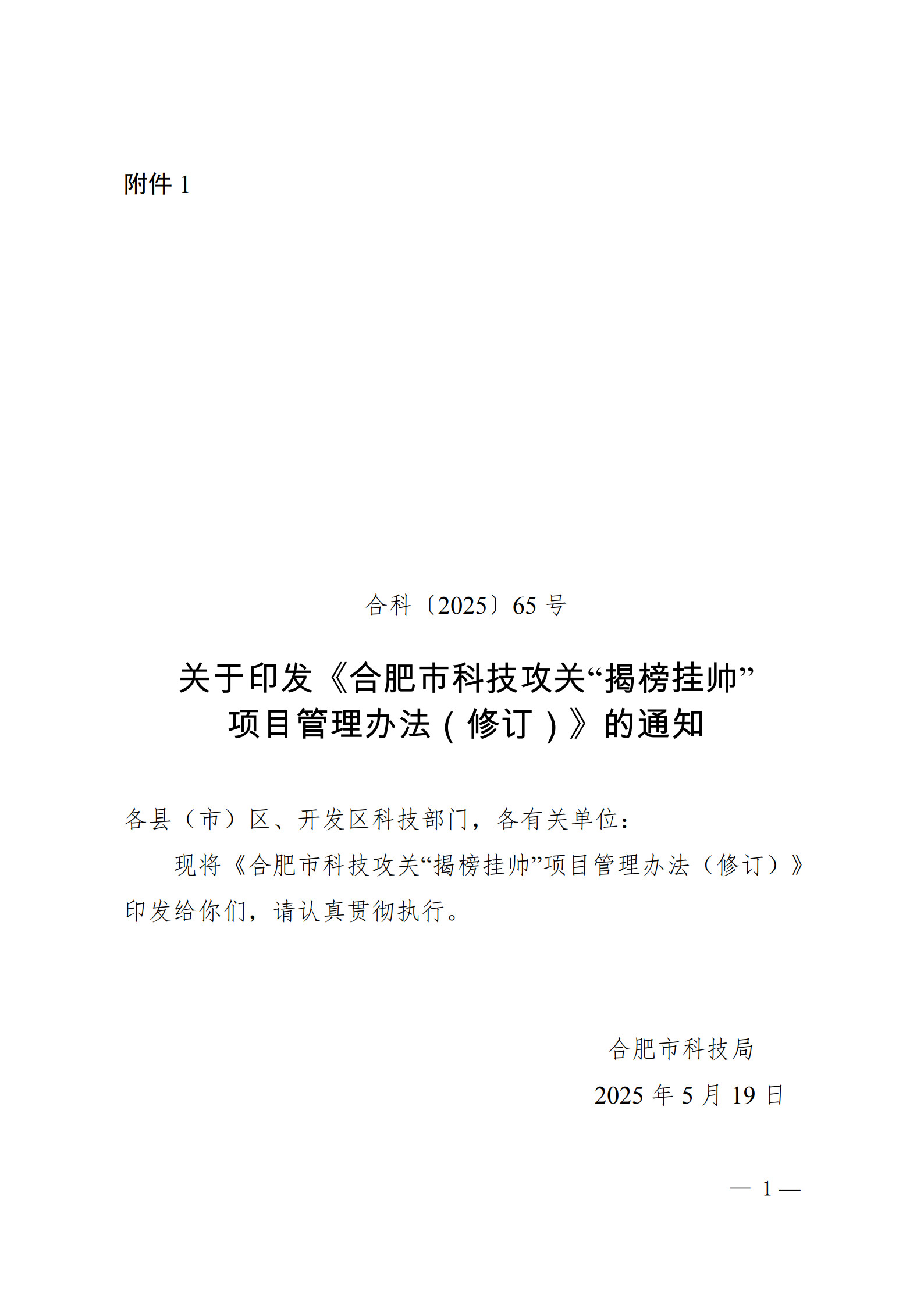 附件1-关于印发《合肥市科技攻关“揭榜挂帅”项目管理办法(修订)》的通知.doc