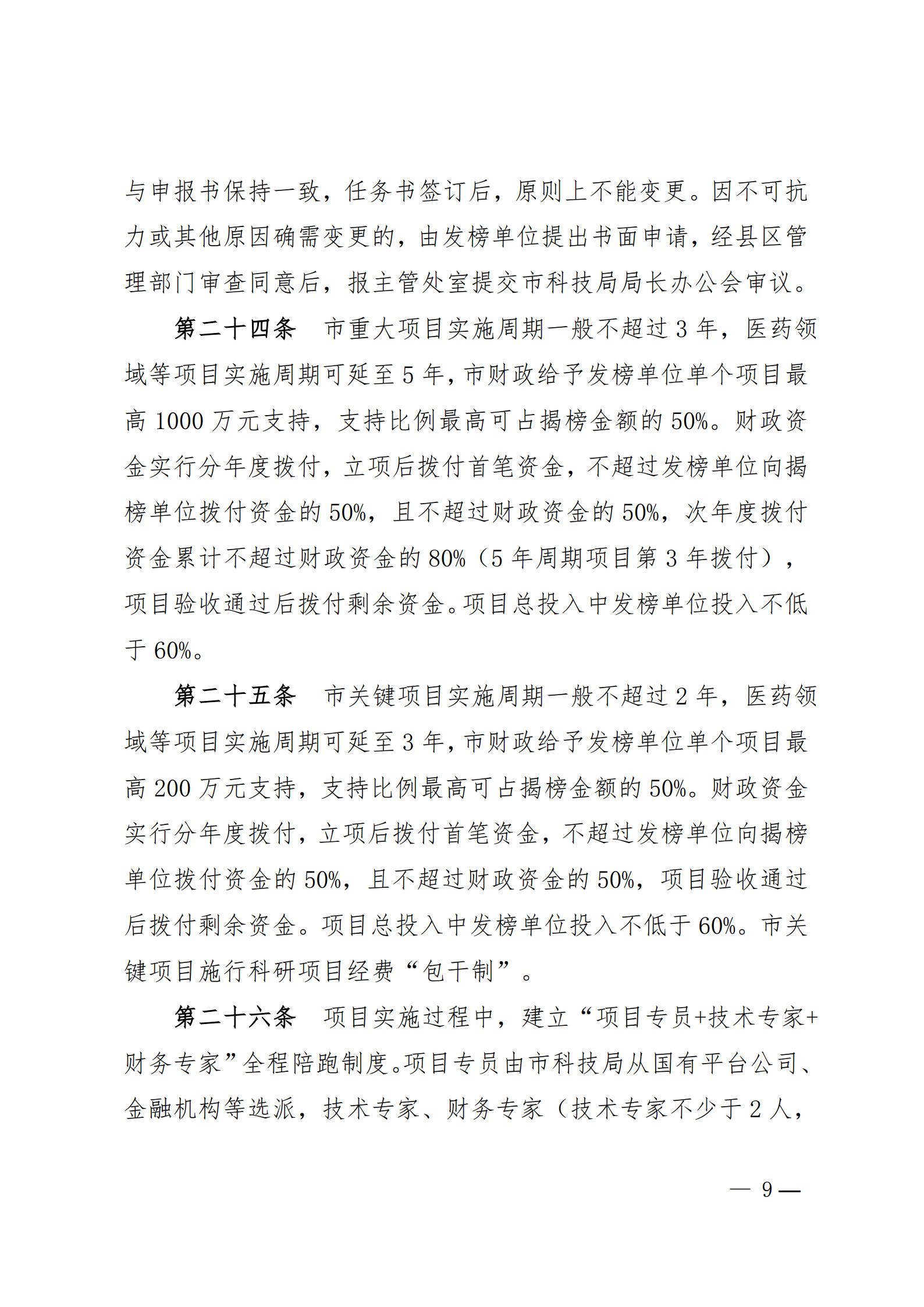 (一)对揭榜金额要求。市科技重大专项“揭榜挂帅”项目揭榜金额不低于1000万元;市关键共性技术研发“揭榜挂帅”项目揭榜金额不低于60万元。